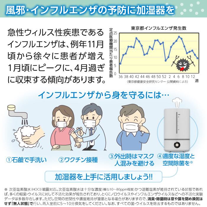 ※6:加湿器としてご使用時は、水質浄化スティック(カルキばいばい)に対応します。次亜塩素酸水溶液を噴霧時にこちらを投入すると次亜塩素酸の効果が低減もしくは消失します。