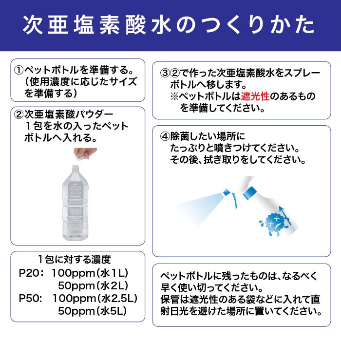当社販売名:次亜塩素酸パウダー 次亜塩素P50