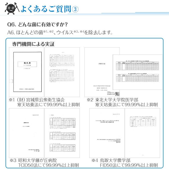 本品の水溶液に抗菌スティック(抗菌水Ag+)を投入しないでください。水溶液自体に除菌効果があるので本品は